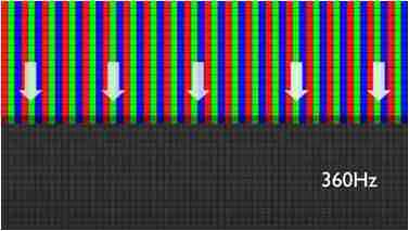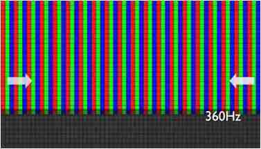 传统液晶驱动是从左到右单向进行,,,在画面更新速度愈来越愈快的情况下,,,,位于驱动线路末端的右下角区域,,画素的闸极来不及在短时间内获得足够电压,,无法显示出正确的颜色资讯。。。。 |