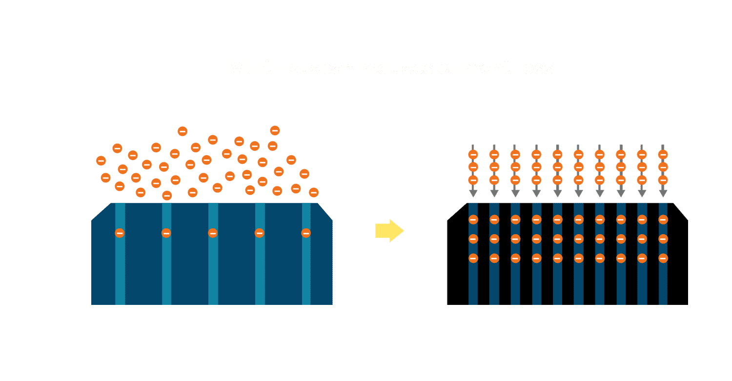 - 多条电极栅结构,,,,可有效降低外力对于电池的影响,,,,限制电池隐裂 (Micro-cracks) 范围,,防止电流传输路径 (Current distribution) 之损坏进一步扩大。。